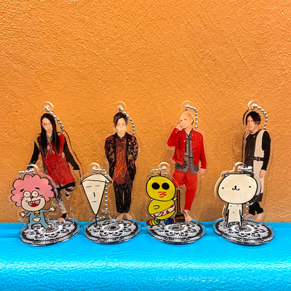 SIZE: 台座 約W45mm×H45mm キャラクターキーホルダー 約H55mm アー写キーホルダー 約H100mm ボールチェーン付き ※台座にキャラクターとアー写、2つのパーツを取り付けられます。 購入に関するご注意 ※画像はイメージです。実際の商品とは若干異なる可能性がございます。また予告なくサイズ、仕様の変更をさせていただく場合がございます。その場合の返品交換などの対応はできません。ご了承のうえお買い求めください。 ■この商品は代引き決済をご利用いただけません。クレジット決済、及びコンビニ決済をご利用ください。 ■他のアイテムと同時購入された場合、全てのアイテムが揃ってからの発送となりますのでご注意ください。 ※製造の都合や輸送状況などにより入荷時期に変更がある場合は、発送時期を変更させていただく場合がございます。その場合は、当ページにて随時ご案内いたします。