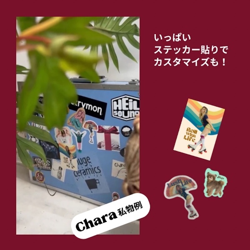 70'sを感じるローラーガールスタイルChara & 愛犬Mojoのステッカー10枚セット。ギラギラのホロ素材やCharaからのメッセージデザイン豊富な、Takao Iwasawa『撮り下ろし』レトロなニュアンスでスマホケースに入れたり、ファイルに貼ったり身近なところで色々活躍できるグッズ。Charaが普段から使っているケースにベタ貼りした画像も参考に。 素材:PE、PET パッケージサイズ(cm):W10×H16 = = = = = = = 商品発送 10月14日頃の入荷予定。受付順に順次発送いたします。