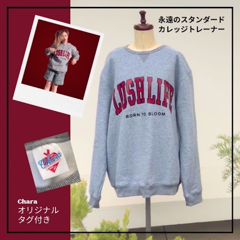 ローラーガール風でも、普段着使いでも気軽に可愛く着こなせるカレッジ風トレーナー!Charaのこだわり、パターンから作った『オリジナルボディ』でボーイズサイズ、ちょっと大きめな感じで『ボーイフレンドに借りた服を着た』みたいに可愛く。リラックス着でもタウンユースでもぴったり、小柄な女性だったらミニワンピース風着こなしも?スカート・ジーンズ・タイツなどと合わせ、お好みで着こなして。もちろん男性も着られます、Charaオリジナルタグ付き。 サイズ:約身丈=76cm、身巾=60、肩幅=54cm、袖丈=63cm 素材:綿、ポリエステル = = = = = = = 商品発送 10月14日頃の入荷予定。受付順に順次発送いたします。