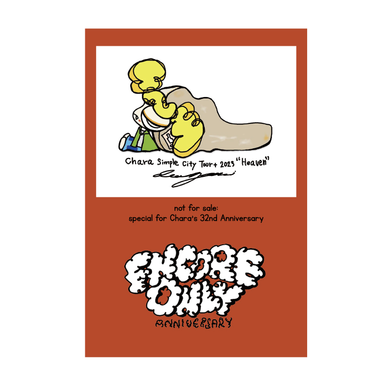 Special Price 6,800円 → 3,500円 □カラー:紺×白(シャツ)、ブラックプリント □本体サイズ :身丈=78、身幅=61、裄丈(ゆきたけ)=90cm *裄丈:後襟ぐりの中央から肩口を通って袖口端までを直線で測定 □素材 : 綿100% □限定ステッカー付き 『タイムマシーン』MVのCharaをDAICHI YANAI.が描いたラグランTシャツは、リラックス感ある着こなしを楽しめる大きさで小柄な女性ならワンピースになるメンズのXLサイズ。後ろ姿もおしゃれな『ENCORE ONLY』のロゴ入り。32周年のお祝いにお揃いイラストのステッカー付き!これを着て、Charaのデビュー日をみんなでお祝いしよう。 *商品写真は参考用写真です。実際の商品とは、色・形など若干異なる場合がございます。 *商品に関するお問合せなどにつきましては、「CharaオフィシャルHPお問合せ」に、発送に関するお問合せはARTIST DELI SHOPPINGコールセンターにて承ります。 = = = = = = = 商品発送 クレジットカード及びコンビニ決済はご入金確認後10日以内、代引き決済はご注文確認後10日以内でお届けとなります。 ※他のアイテムと同時購入された場合、全てのアイテムが揃ってからの発送となります。受注商品など発送時期の異なる商品を併せてお買い求めの場合にはご注意ください。 また、天候不順などにより商品入荷及び発送業務が遅れる場合がございます。あらかじめご了承ください。 製造の都合や輸送状況などにより入荷時期に変更がある場合は、発送時期を変更させていただく場合がございます。その場合は、当ページにて随時ご案内いたします。